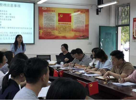 活动中,部分毕业生党员还介绍了自己大学三年有关课程学习、学历提升的渠道方法等的奋斗历程。随后,老师们帮助毕业班党员做好档案归档以及党组织关系转移工作并反复叮嘱毕业生们,把自己的党员档案保管好,正确落实工作单位档案处。老师们在整理的过程中,也收集一些毕业班党员对支部、学校的反馈建议。